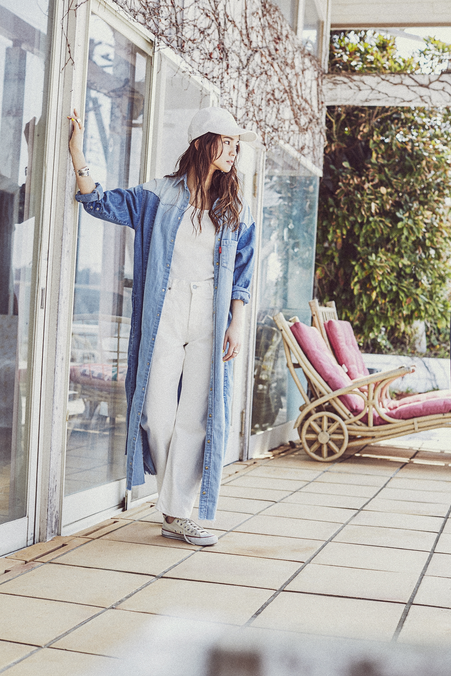 「私自身、シンプルだけどパッチワークの切り替えしがあるようなデニムや、ストンと着られるシルエットのワンピースが好きで、このシャツワンピは、1枚でワンピースとしても着られるし、ボタンを開けてガウンのように羽織ることもできます。自分の好きとこだわりが詰まった、欲しいと思うアイテムを作りました。」