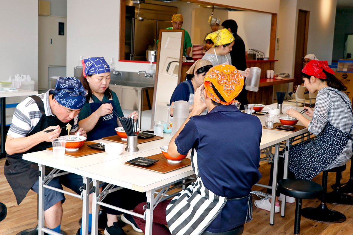 また、今回のリニューアルでは、食育・ラーメン文化の普及に向けた体験プログラムとして、ラーメン創成期に行われていた「青竹打ち」の製法による麺作り体験を通し、国内外のお客様に小麦から作るラーメンの奥深さや小麦の種類等による味わいの変化を体験していただきたいという想いで、スタートすることとなりました。