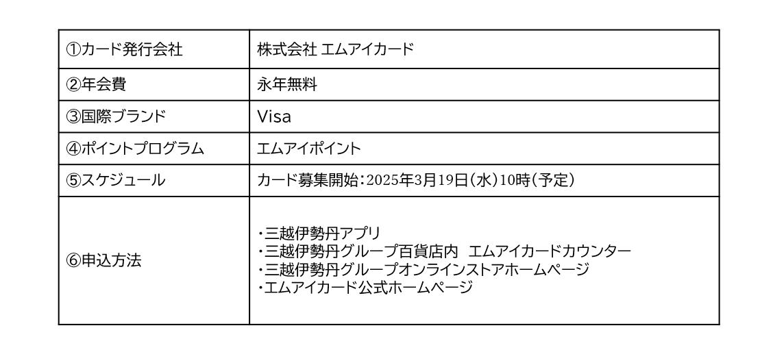 株式会社三越伊勢丹ホールディングス(本社:東京都新宿区、取締役 代表執行役社長 CEO:細谷 敏幸)の子会社である株式会社 エムアイカード(本社:東京都中央区、代表取締役社長執行役員:梅田 貴生)は、新たに年会費永年無料のクレジットカード「エムアイカード ベーシック」の発行を開始いたします。