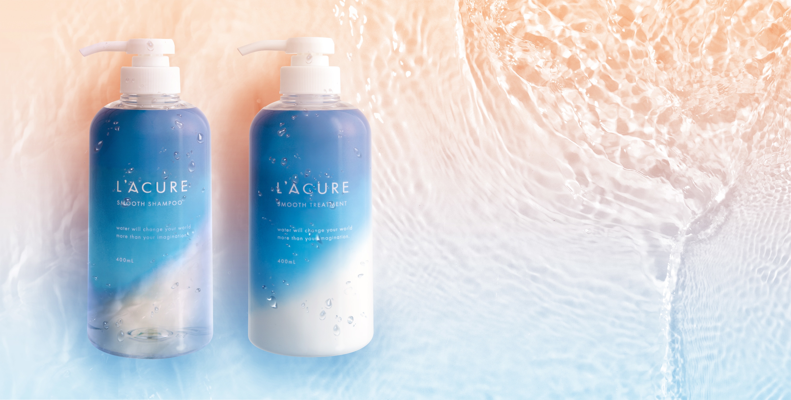 「L'ACURE(ラキュア)」は、「水」と「熱」の力を利用した新発想のヘアケアシリーズです。キューティクルから流れ出てしまった水分を、毎日のシャンプーで保水(ウォーターリテンション処方)しながら、ドライヤーやヘアアイロンの熱の力を逆手に取り、補修成分(γ-ドコサラクトン)を毛髪のキューティクルと結合させ、髪本来の持っている美しさを際立たせてくれます。