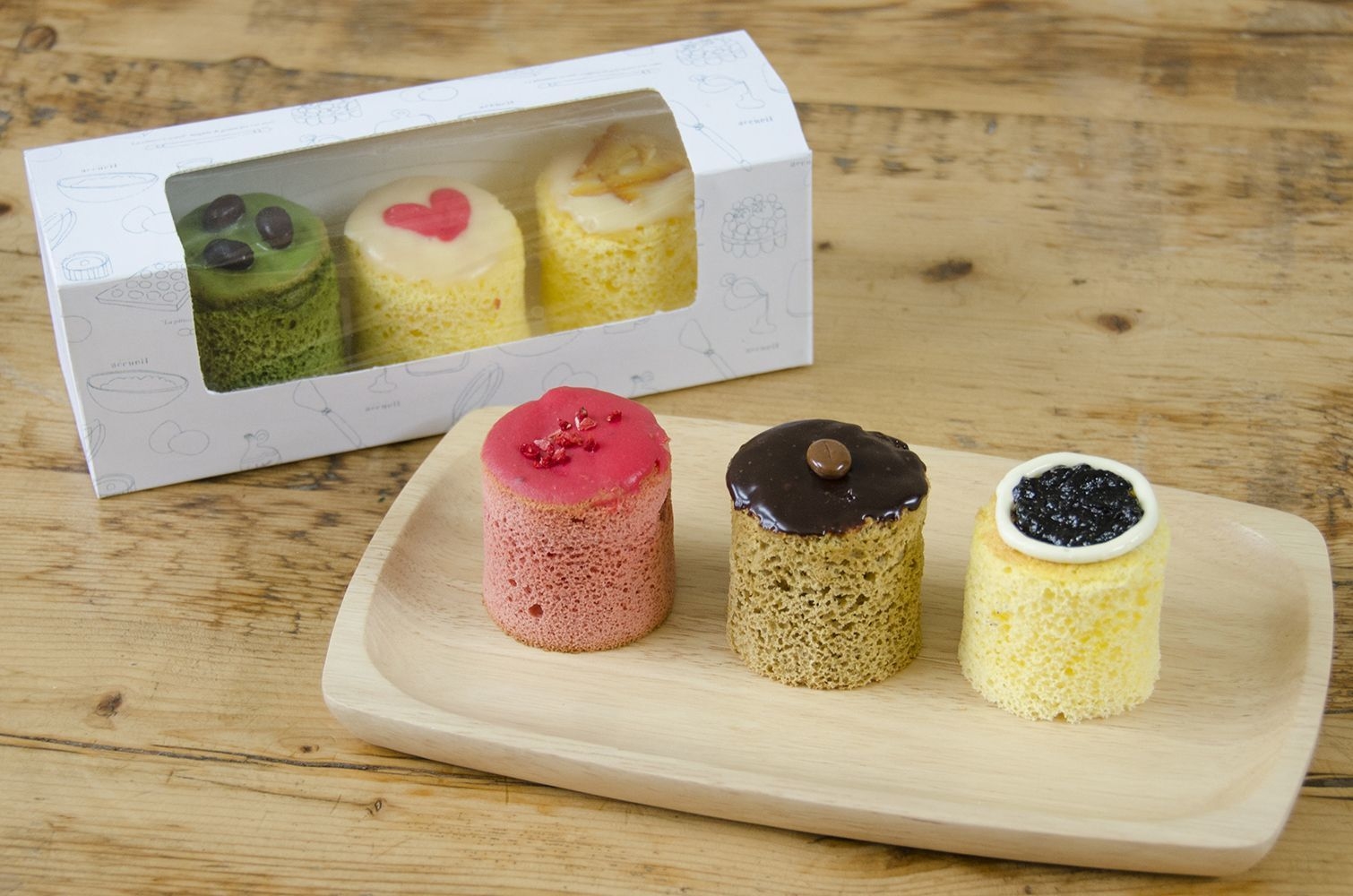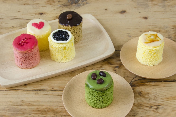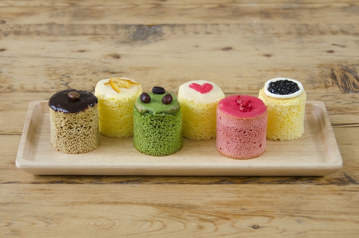 「ぱふぉん」は、大人気のアクイーユオリジナルのパンケーキを、ふわふわのシフォンケーキのように焼き上げました。一つ一つこだわり厳選したフレーバーは、バニラ・チーズ・オレンジ・抹茶・カフェショコラ・ベリーの6つご用意いたしました。ふわふわ生地の中にはクリームがはいっており、新宿にお越しの際のお手土産などにもぴったりです。