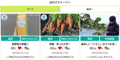 - 投稿に対して「いいね!」や「コメント」で農家さんを応援できます!