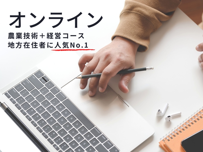オンライン通信コースでは、農業を仕事にするにあたって欠かせない原理原則を主とした『技術と経営』についてオンライン通信で学ぶプログラムです。自宅でも、出張先でも、どこからでも農業を学ぶことができ、来校不要のインターネット上で配信する「ライブ動画」を受講可能です。