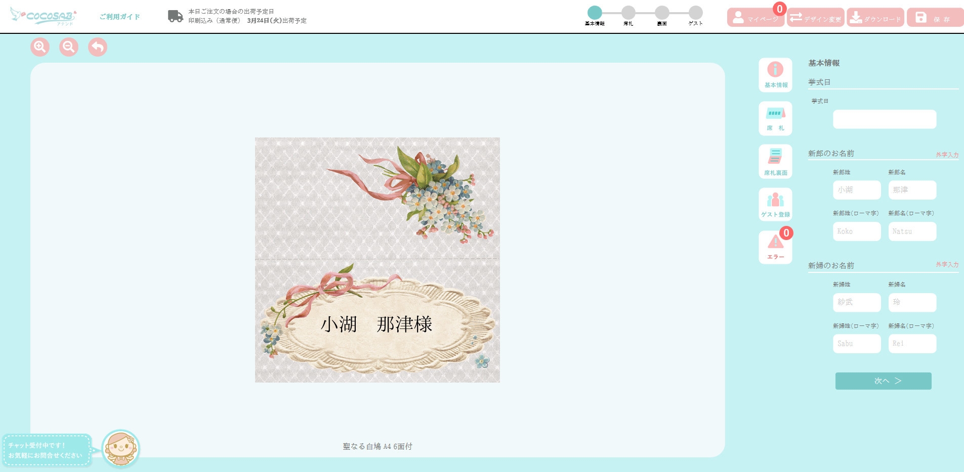 ココサブ アテンドは、注文前にプレビューで仕上がりイメージを確認できるから、事前にペーパーアイテムを完成させておけます。仮に結婚式が延期になったとしても、会員登録してデータを保存しておけば、次回そのデータを流用できるため、二度手間にもなりません。例え結婚式がキャンセルになったとしても、キャンセル料金はもちろんかかりません。