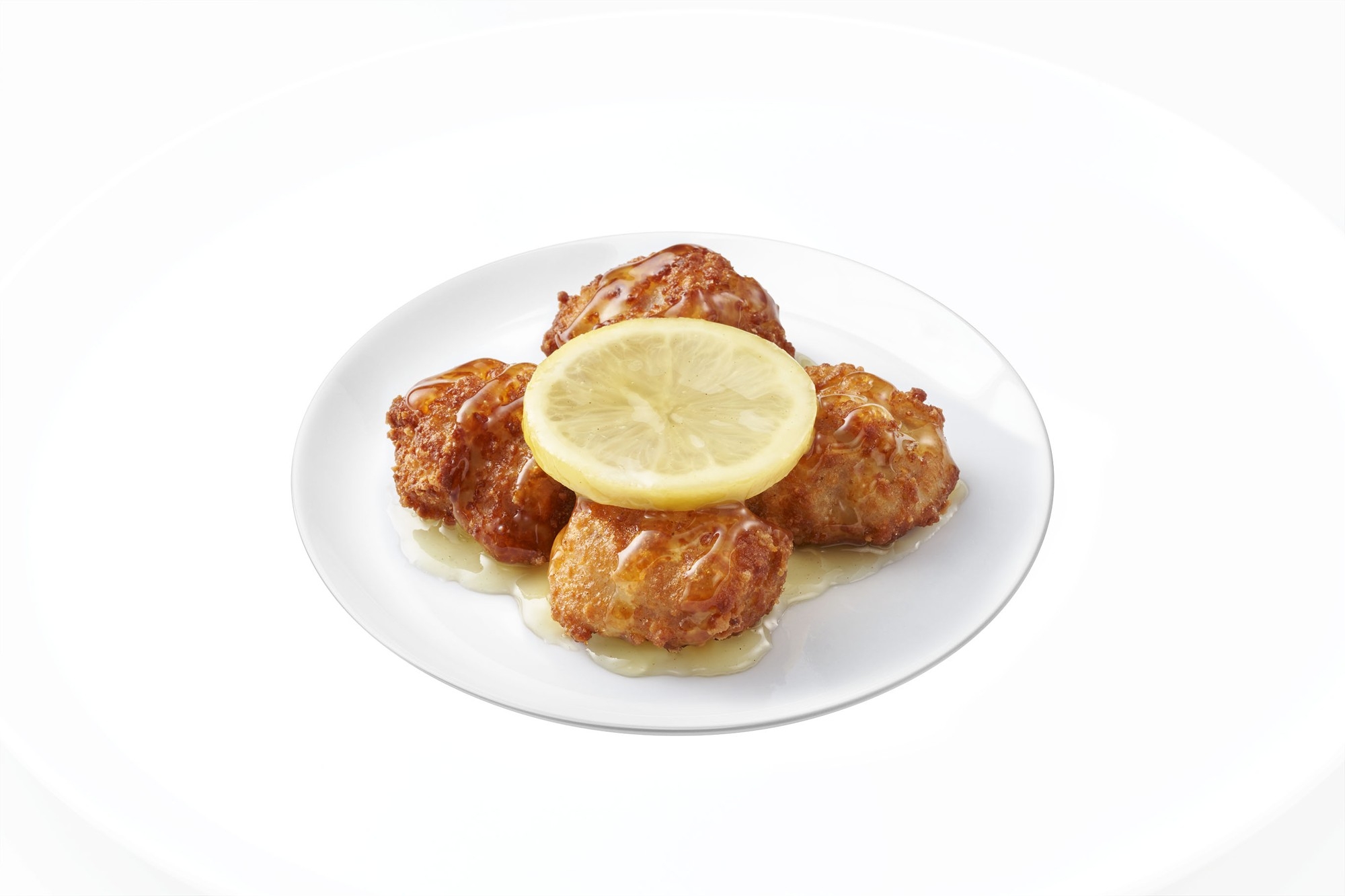発売する「香港レモンチキン」は店内で揚げた薄衣のから揚げにスライスレモンを乗せ、オリジナルレモンソースをたっぷりかけたさわやかで甘酸っぱい味わいが広がる「から揚げ(チキン)」です。