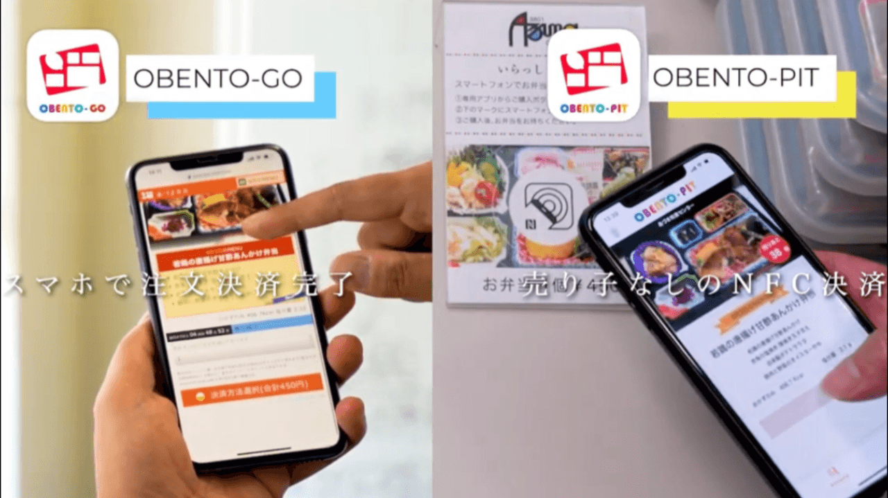 そして近年、政府のキャッシュレス推進政策による「キャッシュレス決済」や、新型コロナウイルス感染症の感染防止のための「非接触」や「無人化」というニーズが高まっていたこともあり、2020年にNFC(近距離無線通信)を使った「OBENTO-PIT(オベント・ピット)」というサービスを開始しました。これは、シール型のNFC決済を採用して、オフィス内のお弁当販売での非接触・無人化に力を入れたサービス。これまでの、販売員を配置して手売りする売り子販売形式も多かった宅配弁当の無人化に取り組んだ形です。