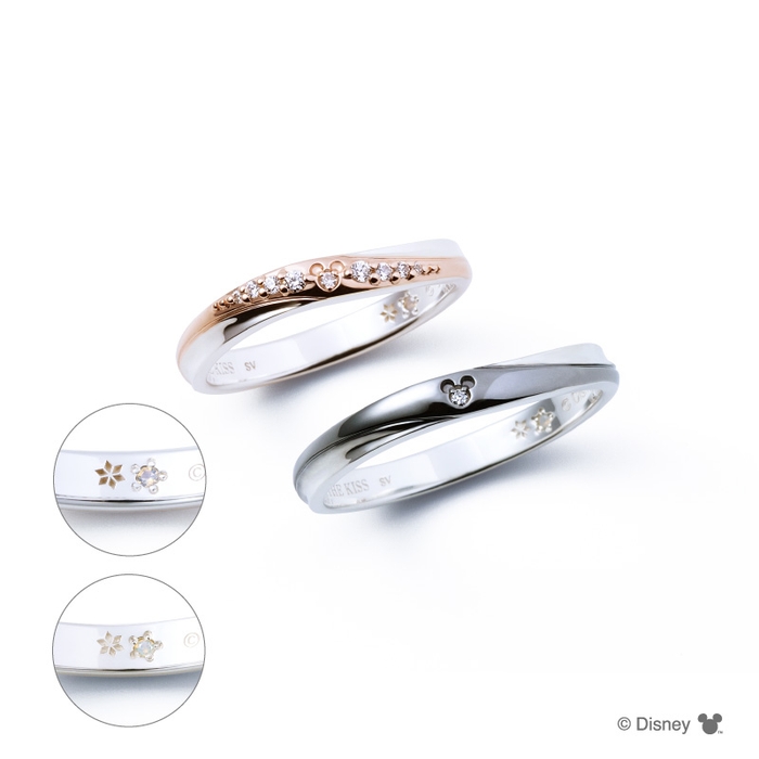 どちらにもミッキーアイコンに寄り添うように、「永遠の愛」を意味するダイヤモンドをセット。