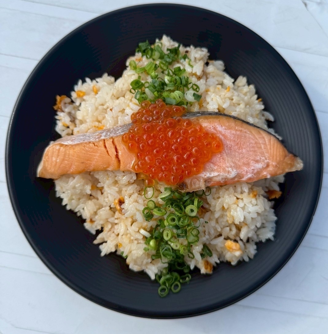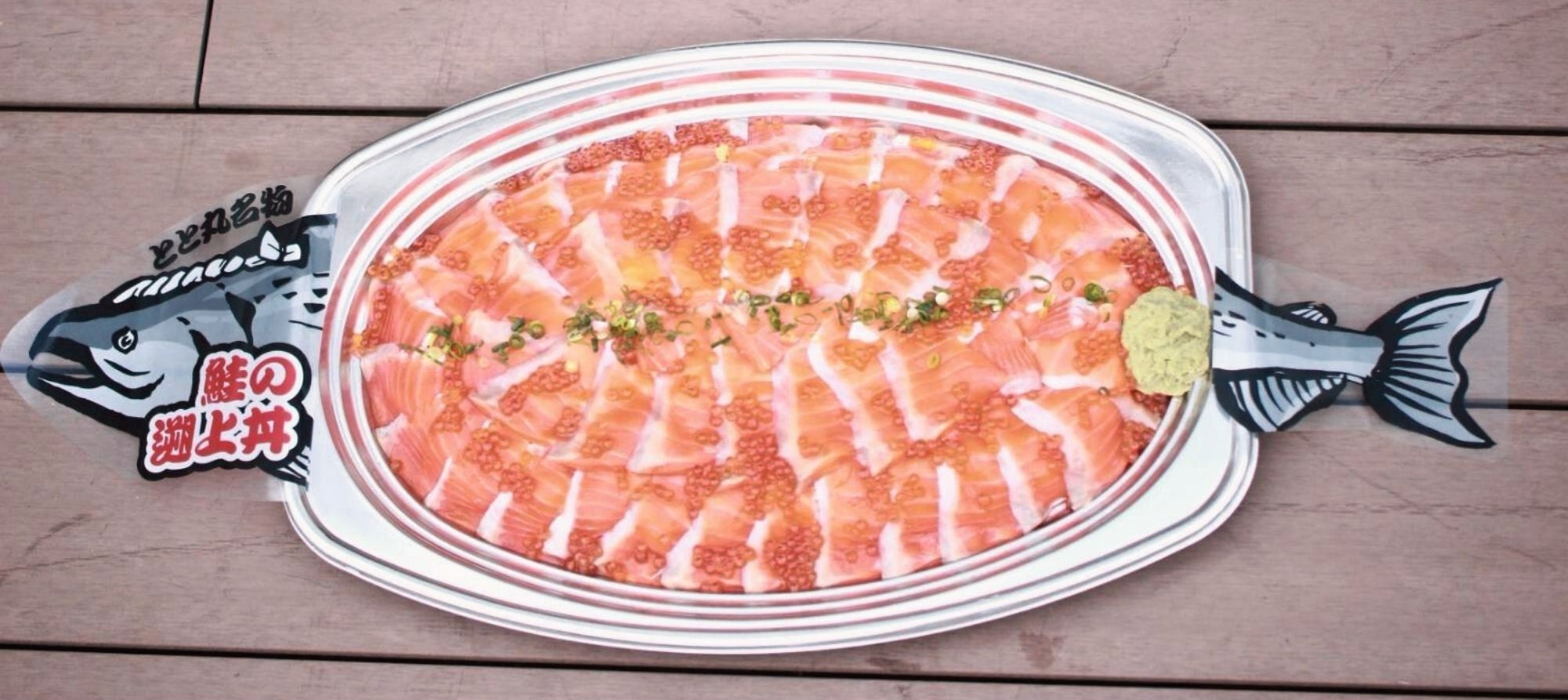当駅名物の「鮭の遡上丼」を、たっぷりのいくらと脂ののったサーモンを贅沢に盛り付けた特別バージョン「お持ち帰りサーモンいくら鮭の遡上丼」としてご提供いたします!