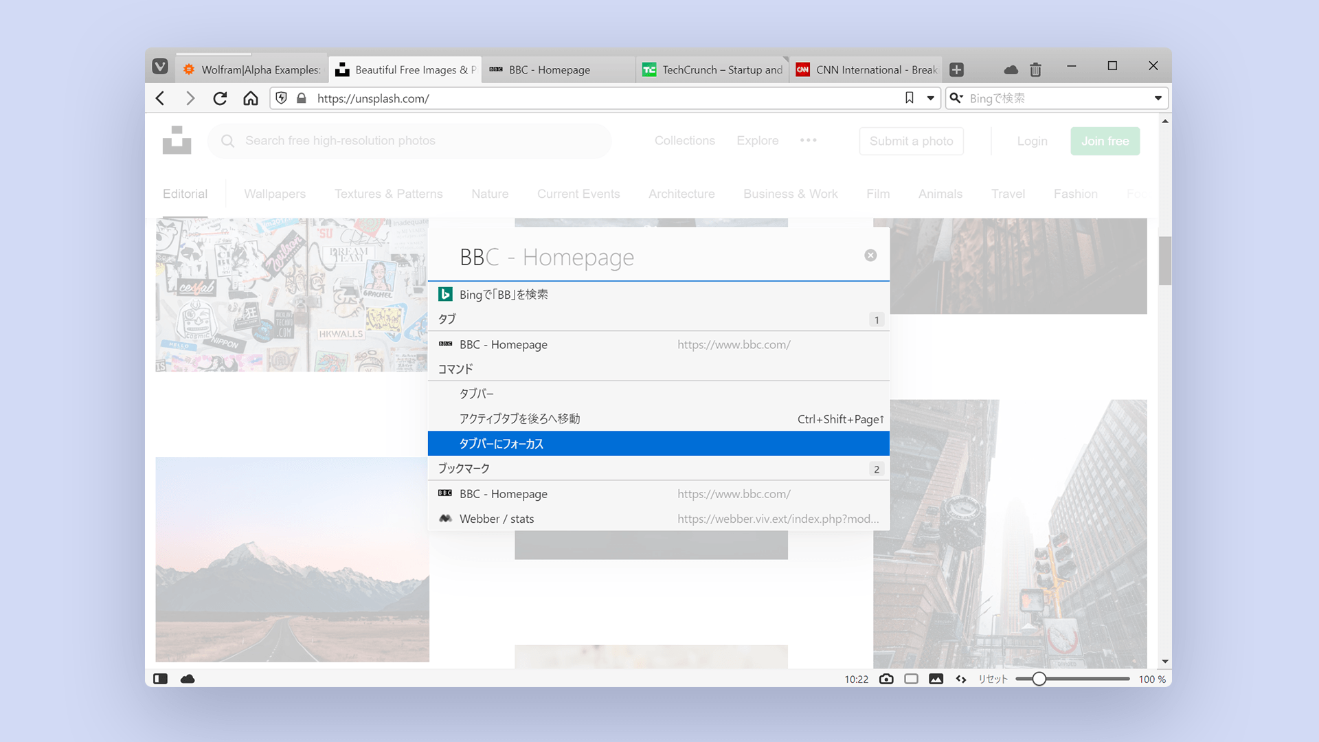 アドレスバーに使いたい検索エンジンのニックネームとキーワードを入力することで、任意のサイトの検索結果を素早く表示します。