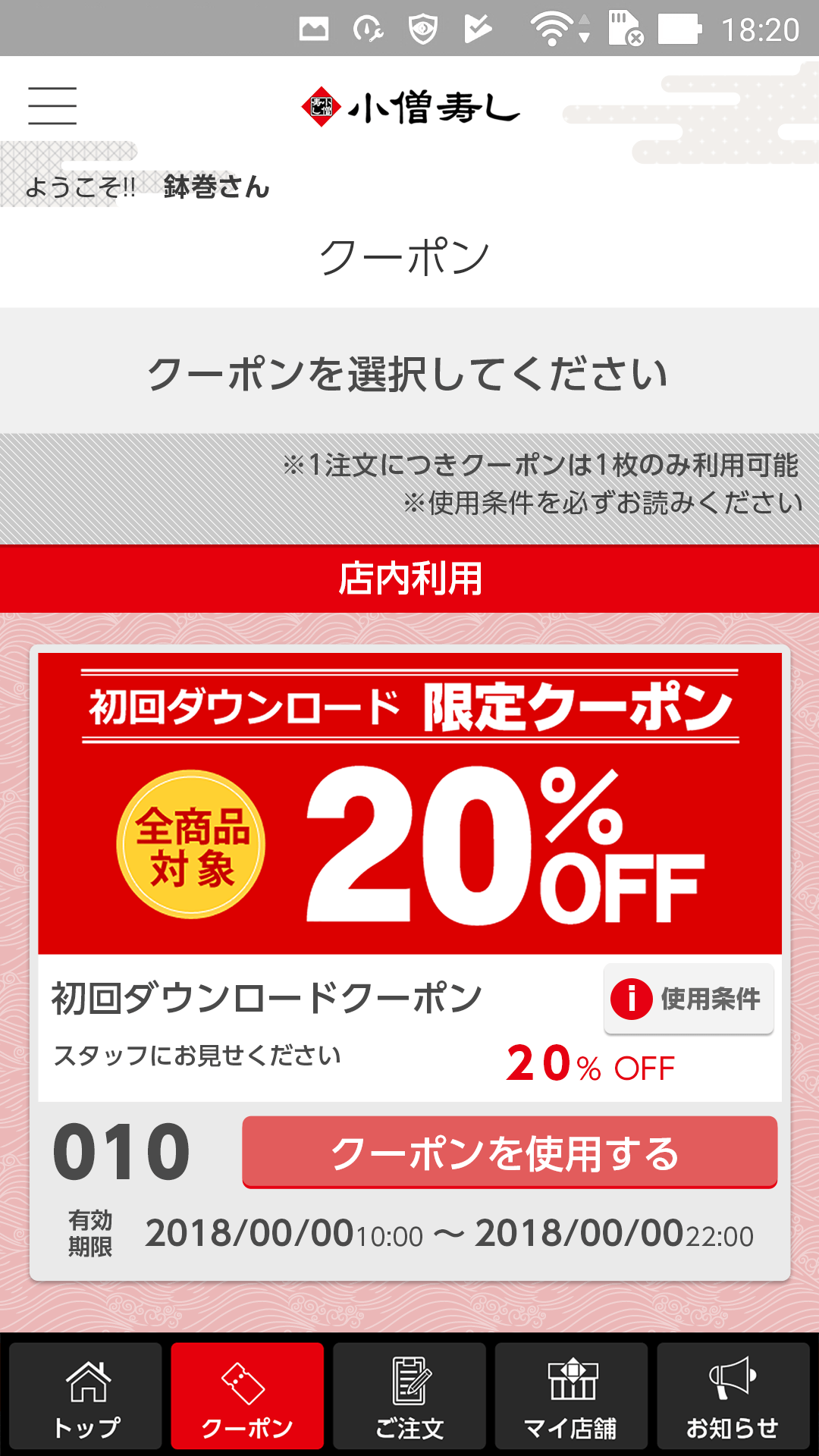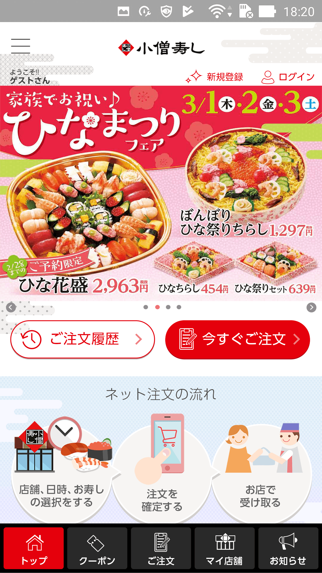 株式会社小僧寿しが運営するお持ち帰り寿司「小僧寿し」の公式アプリで、「小僧寿し」は全国に243店舗(直営105店舗、FC138店舗 、平成29年12月現在)展開中です。