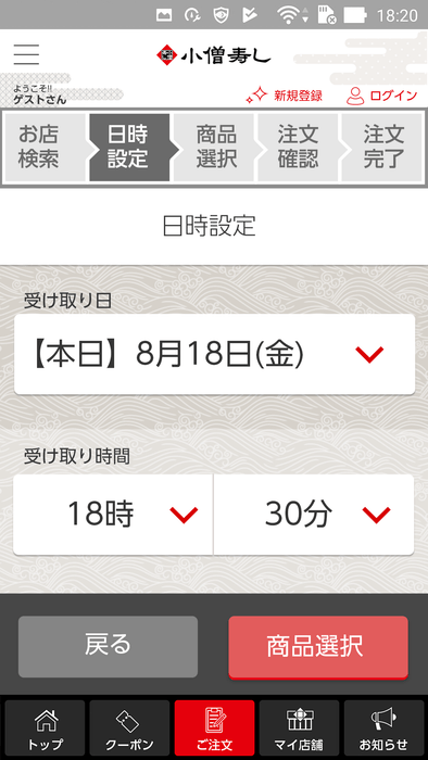 ・お持ち帰り寿司を待たずに受け取れる事前予約注文機能