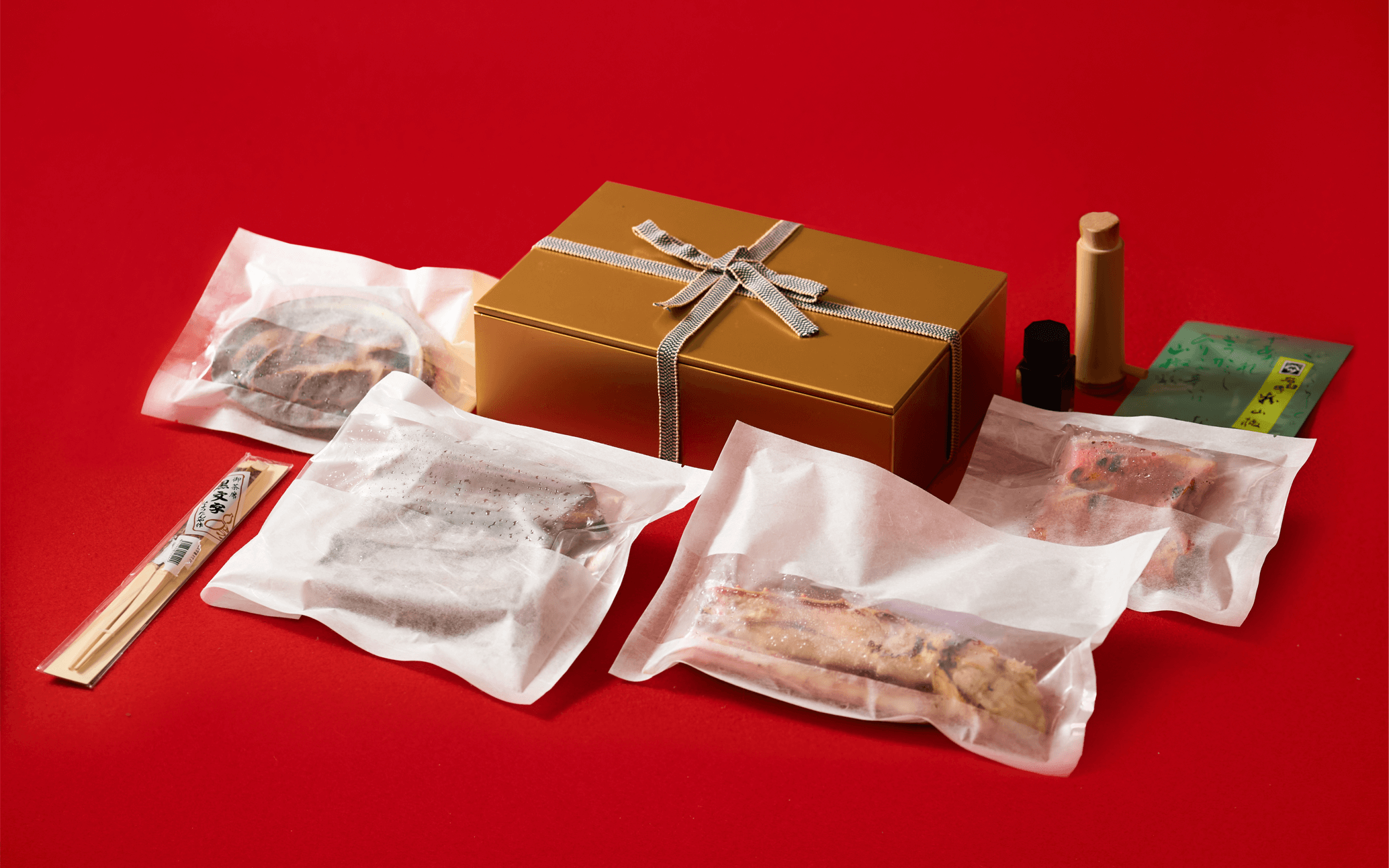 大トロうなぎ、アワビ、金目鯛、タラバガニの四種の蒲焼きを特注の金の箱に詰め込みました。それぞれの素材が持つ豊かな味わいと、縁起の良さが特別な日の食卓を彩り人生の節目や、大切な人との絆を深めるひとときに最適です。