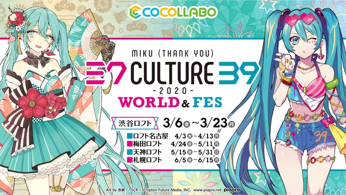 株式会社キャラバンは、展開するグッズブランド『ココラボ』よりバーチャル・シンガー初音ミクのコラボレーションストア「39Culture2020」を渋谷ロフトにて2020年3月6日(金)午前10時より開催いたします。