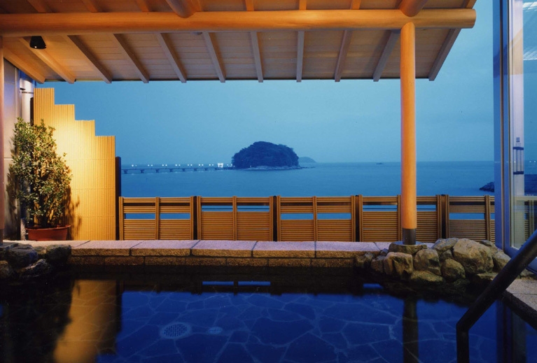 パワースポット「竹島」と波穏やかな「三河湾」をのぞむことができる客室と温泉、地元の海の幸、山の幸を豊富に使ったお料理で、非日常の癒しをご満喫いただけます。