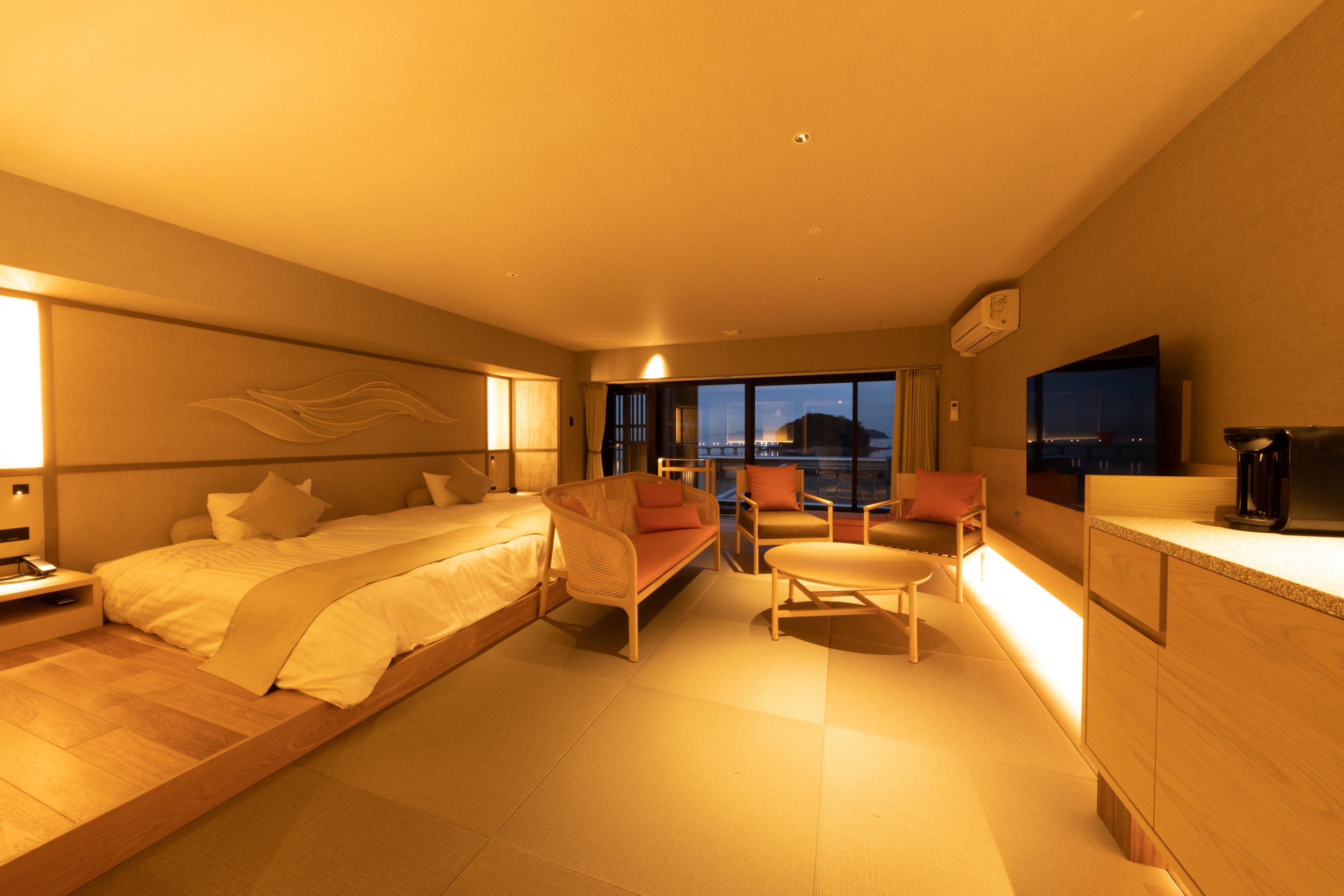 三河湾をのぞむ絶景の宿『蒲郡温泉 ホテル竹島』を運営する蒲郡竹島観光株式会社(所在地:愛知県蒲郡市竹島町1番6号)は2024年2月15日、波穏やかな三河湾を眺めながら天然温泉を満喫できる露天風呂付客室4室をリニューアルオープンしました。