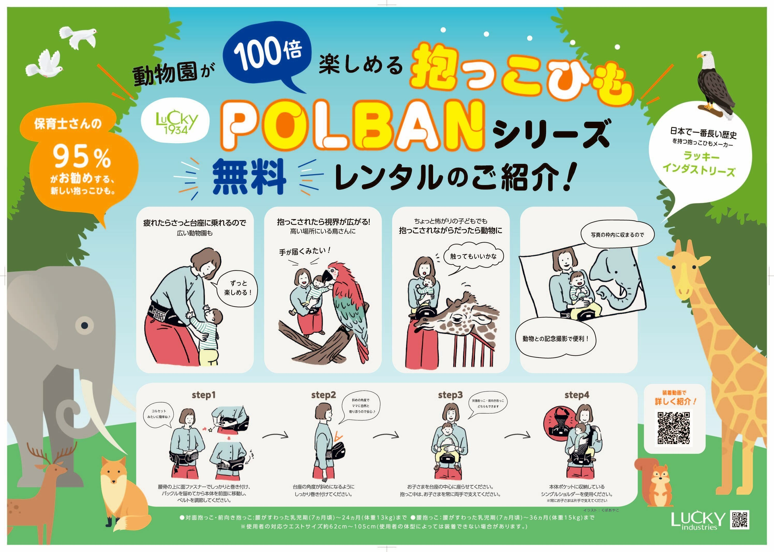 日本で一番長い歴史を持つ抱っこひもメーカー、LUCKY industries(所在地:岐阜県、代表取締役社長:樋口 博之)は、ヒップシート型抱っこひもPOLBAN(ポルバン)シリーズを動物園に無償提供し、来園者が無料レンタルできる取り組みをスタートいたしましたことをお知らせいたします。ポルバンシリーズは累計販売数10万本以上の人気抱っこひもです。ポルバンシリーズ無料レンタルに取り組んでいただける企業様を募集しています。