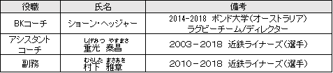 近鉄ライナーズの新加入選手・スタッフおよび退団スタッフについて2019-04-01 14:00近鉄グループホールディングス株式会社 近鉄ライナーズの2019年度の新加入選手・スタッフおよび退団スタッフについて、以下のとおりお知らせします。新加入選手新加入選手スタッフ退団スタッフ画像・ファイル一覧一括ダウンロード新加入選手スタッフ退団スタッフ