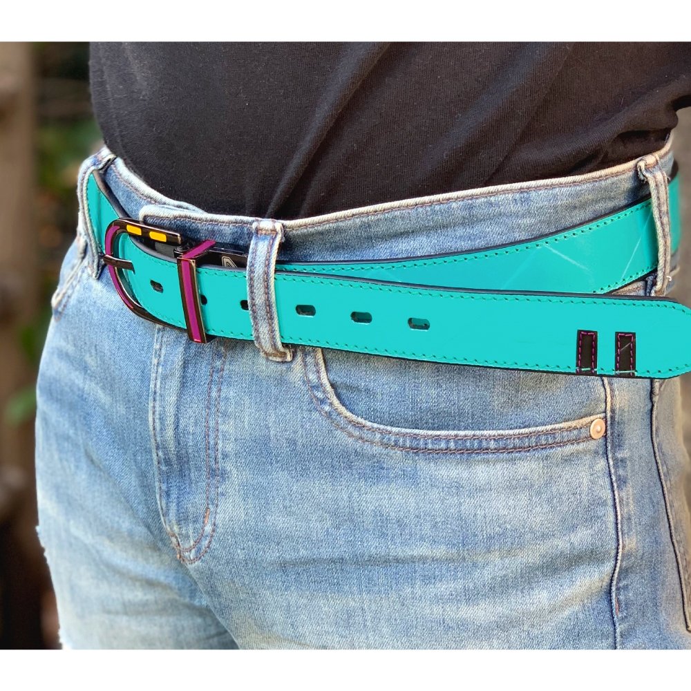 ヘッドフォンをモチーフとした回転式バックルを搭載することにより、リバーシブルで楽しめる本革ベルトです。