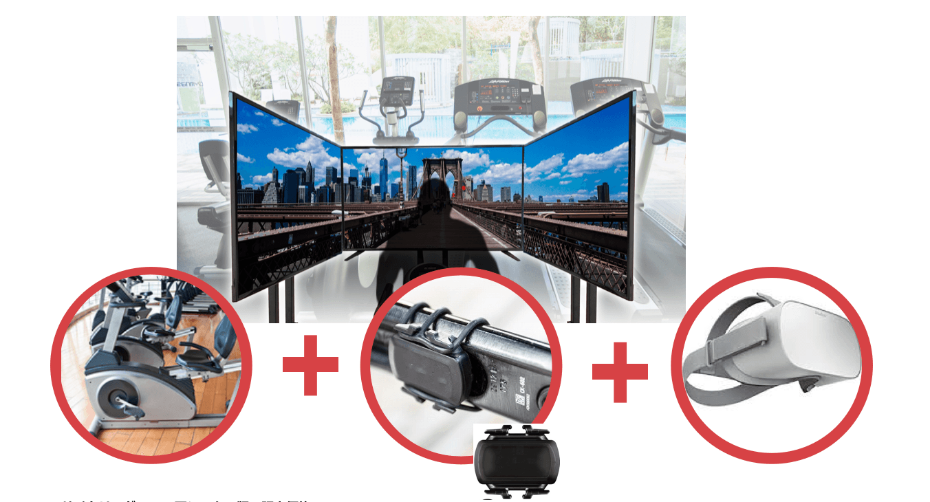 従来のサイクリングVRは、エアロバイクのペダルの回転数を検知した数値を送信するために専用の小型PCをエアロバイクに接続する必要がありました。