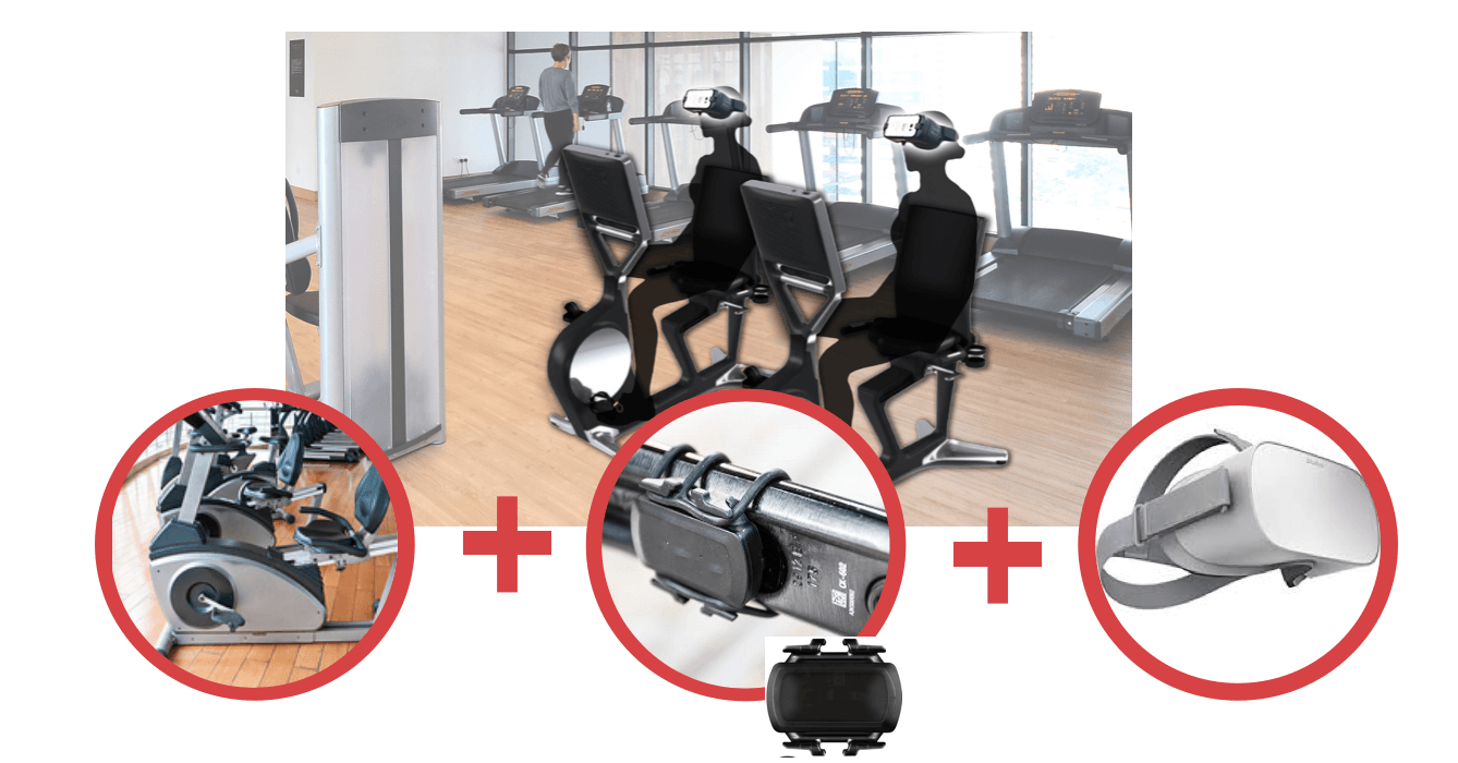 新しく開発したヘルスケアVRは、既存のエアロバイクや自転車に回転センサーを付けるだけで、HMD1つで簡単にサイクリングVRを楽しむことができます。フィットネス施設や自転車を活用したロケーションサービス等、既存の設備をそのまま活用した導入が可能になりました。