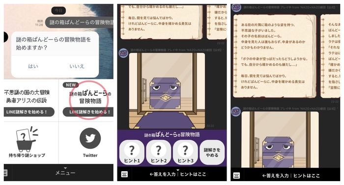 LINEのチャット機能を利用した謎解きゲームです。ユーザーに身近なSNSツールをPR媒体としたサービスで、巣ごもり需要層のフォロワー獲得も期待できます。また、オリジナルの謎やストーリーの制作、ヒントの設置や入力したキーワードに応じた返答設定など、制作に関しても自由度が高く、スマホゲーム感覚で遊んでもらえるコンテンツ制作が可能です。