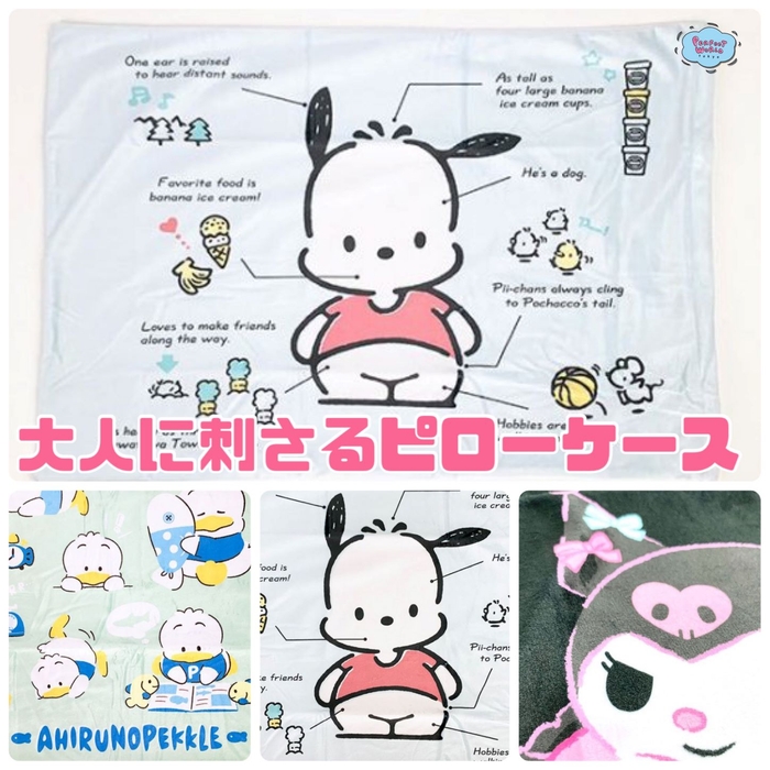 ポチャッコやあひるのペックルなど大人のハートにズキュンとうちぬくサンリオです。待ちわびたキュートさと癒しのピローケースをどうぞ♪