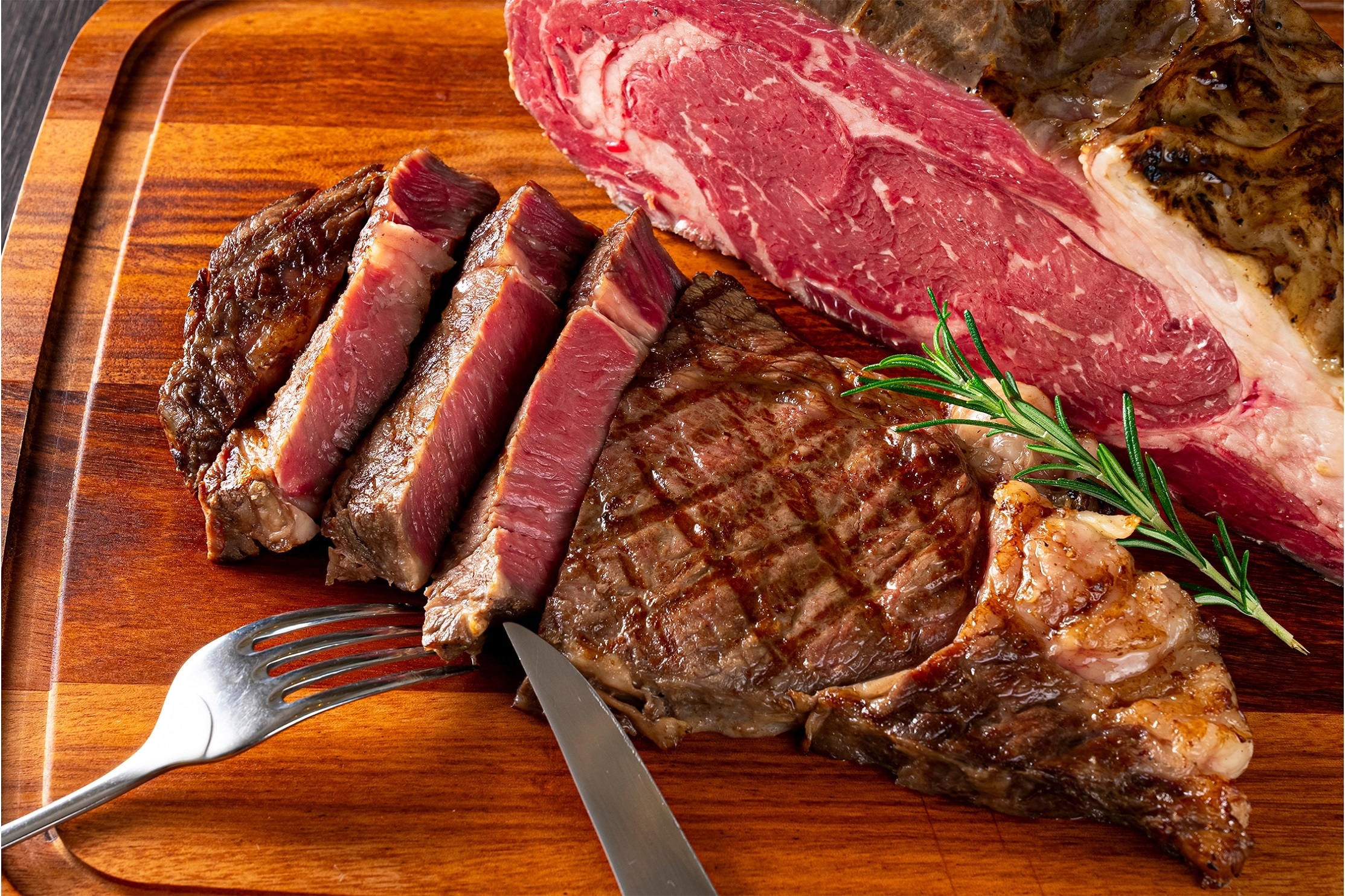 じっくりと調理したローストビーフを厚切りにし、表面をグリルすることで香ばしさが増した極上メニュー。
