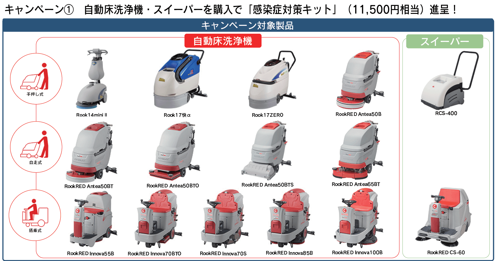 (1)自動床洗浄機、スイーパーを購入で「感染症対策キット」(11,500円相当)をプレゼント