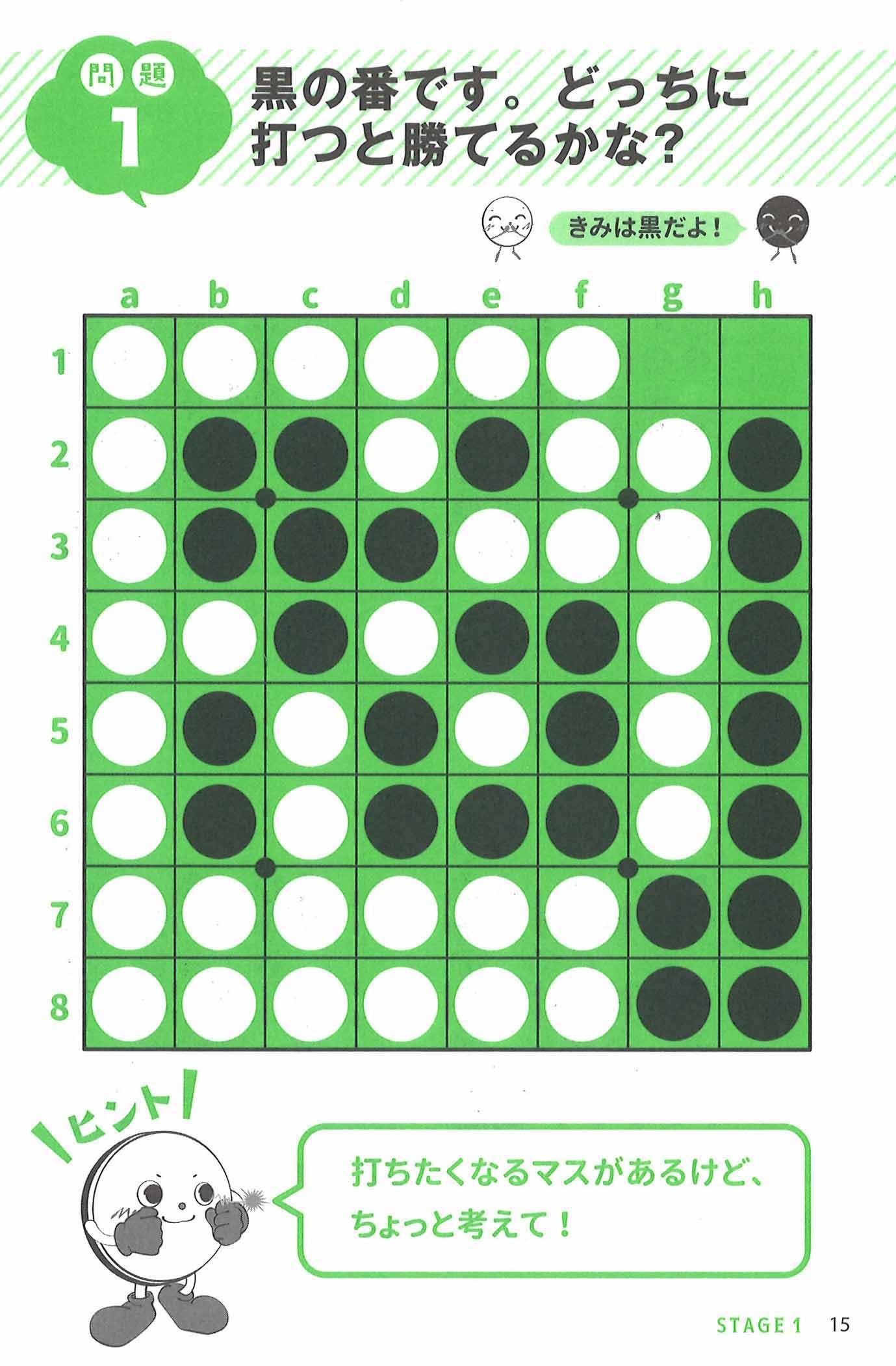 ゲーム最終局面の2マスあきは「どっちに打てば勝てるかな?」を考えます。頭のなかで石をひっくり返しながら数をかぞえていくので、脳トレにもぴったりです。カンタンな2マスあきから、なかなか難しい6マスあきまで全部で100問あります!