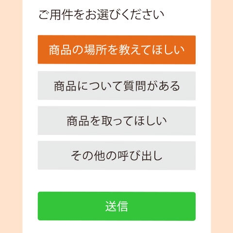 そこから一つを選択して送信。するとそのメッセージが、店舗スタッフのスマホに表示されます。