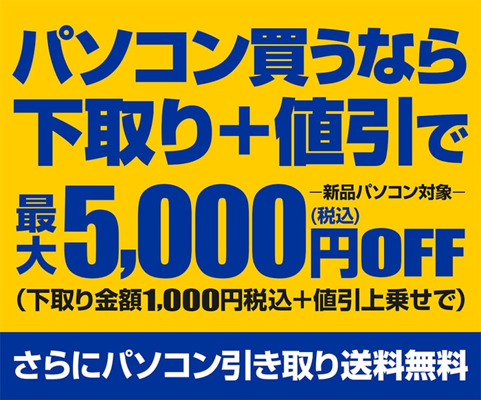■ パソコン買うなら下取り+値引で最大5,000円(税込)OFF!
