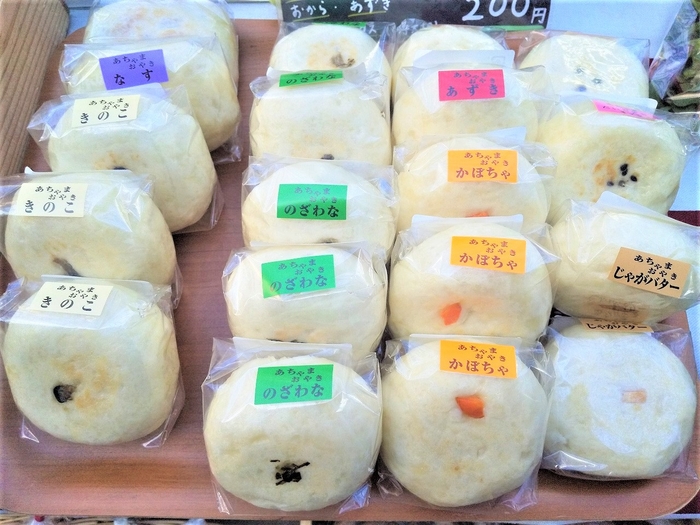 信州のお母さんたちがつくる、野沢菜・きのこから、かぼちゃ・ジャガバターまで、選ぶのも楽しい具がそろいぶみ。トースターやレンジで温めて、ハフハフ食べたいですね~。
