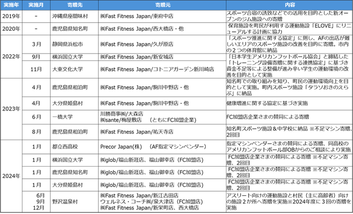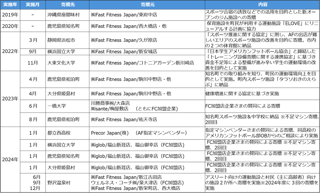 当社では、企業理念である「ヘルシアプレイスをすべての人々へ!」のもと、ESG活動の一環として誰もがフィットネスにつながる機会の創出を目的としたトレーニングマシンの寄贈活動を2019年から実施しております(図1)。これは、当社が運営するフィットネスジムの店舗リニューアル時に発生する入れ替えマシンを、資金やノウハウの不足等の理由で、トレーニング環境の整備が課題となっている離島などの自治体や学校へ寄贈する活動で、これまでに沖永良部島(鹿児島県知名町・和泊町)や横浜国立大学他への寄贈実績があります。当社のこうした活動に対し、本年4月に野沢温泉村からマシン寄贈の要請を受け、今回の寄贈に至りました。