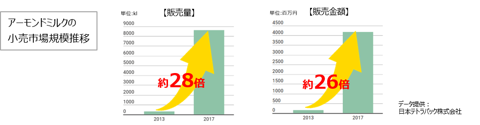 今後もアーモンドミルクの市場の拡大が期待されます。