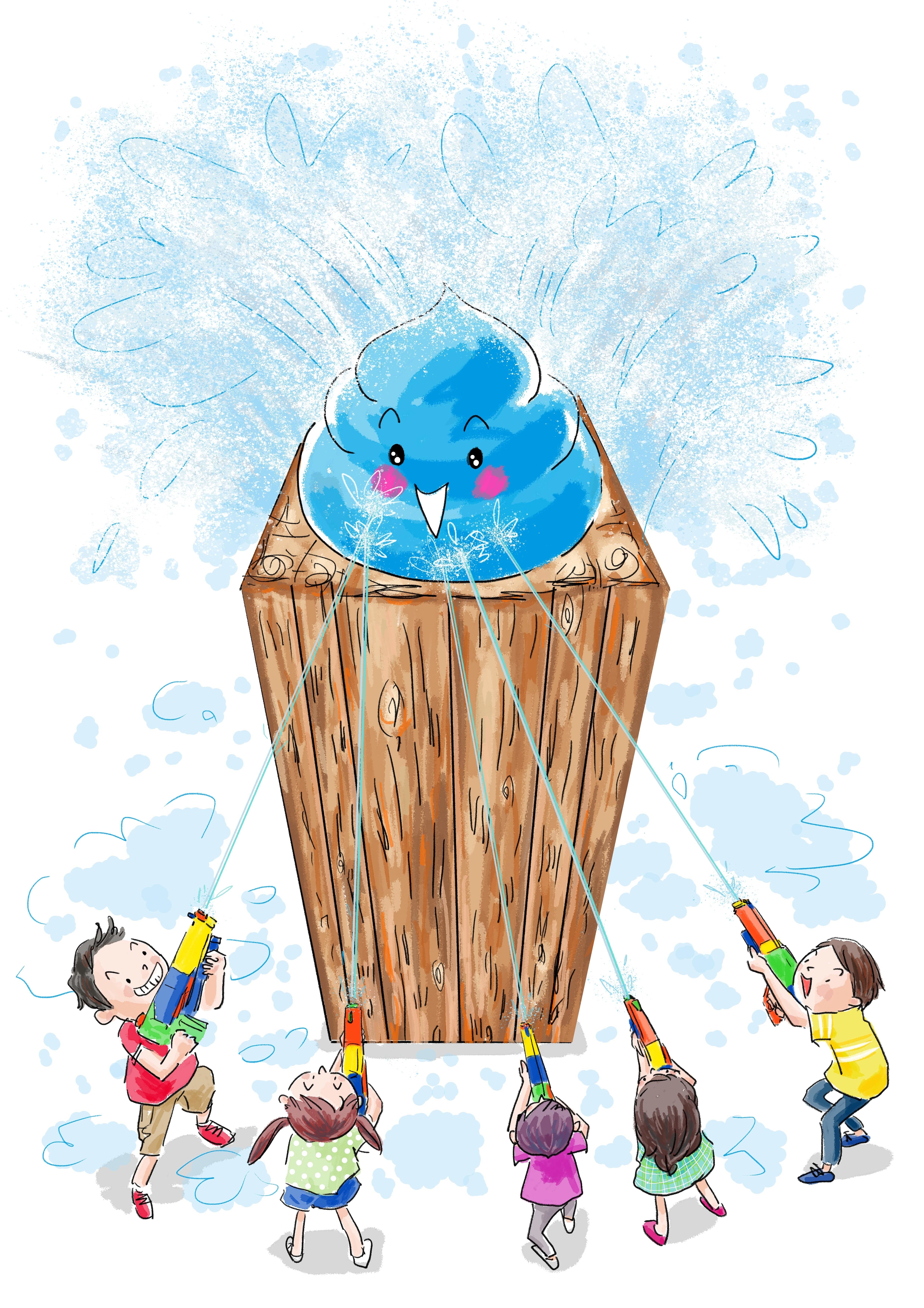 今年のひえひえ王国は《うんち》だらけ!他では体験できない面白さがいっぱい。うんちシャワー、うんち池、うんち水アーチ、ビショビショになる仕掛けがいっぱいです。うんちシャワーでは巨大バケツから勢いよく水を落とすぞ!全身で思いきり水を浴びてひえひえ間違いなし!