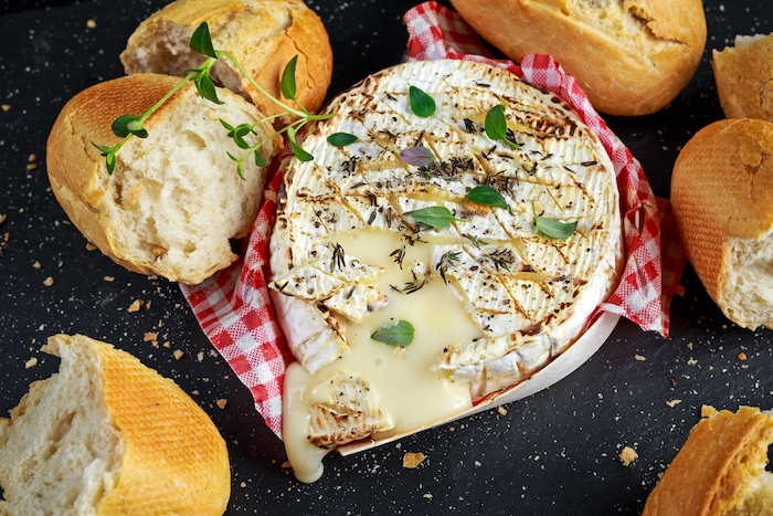 バケットやお野菜をからめてお召し上がりください。お好みで、温める前に胡桃やカットしたりんごをカマンベールチーズの上に乗せるのもおすすめです。