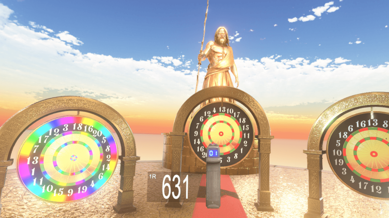 ロケーションテストでは、ブルズアイ競技のコンテンツを体験できます。VRならではの3D空間内で動く的のブル(真ん中)を撃ち抜くことができるのか!?