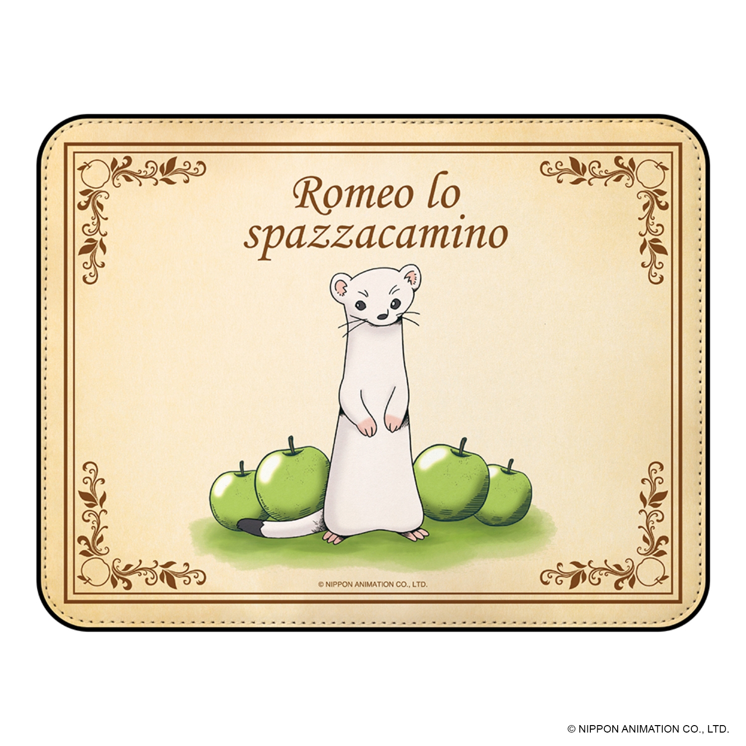 「ロミオの青い空‐Romeo lo spazzacamino -」のキャラクターデザインのマウスパッドです。縁まで丁寧にコバ塗りが施された贅沢な5mm厚パッド。裏面は滑り止めに優れた凹凸のあるラバー素材。表面は滑りが良く丈夫なポリウレタンレザーを使用しています。