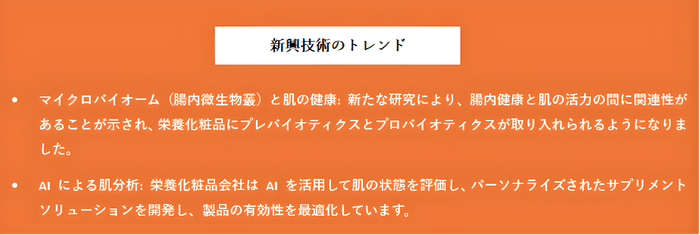 栄養化粧品を形作る企業、テクノロジー、イノベーション