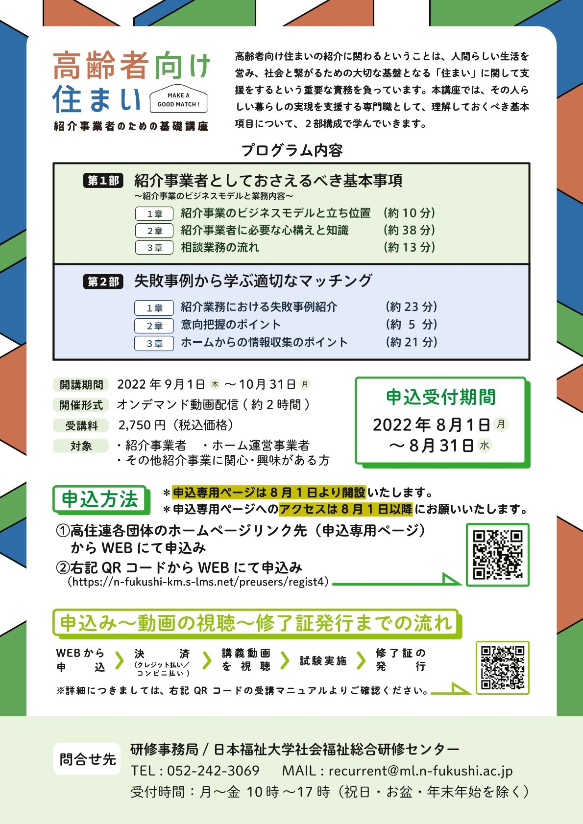 (高住連HP)「高齢者向け住まい紹介事業者のための基礎講座」をご活用ください