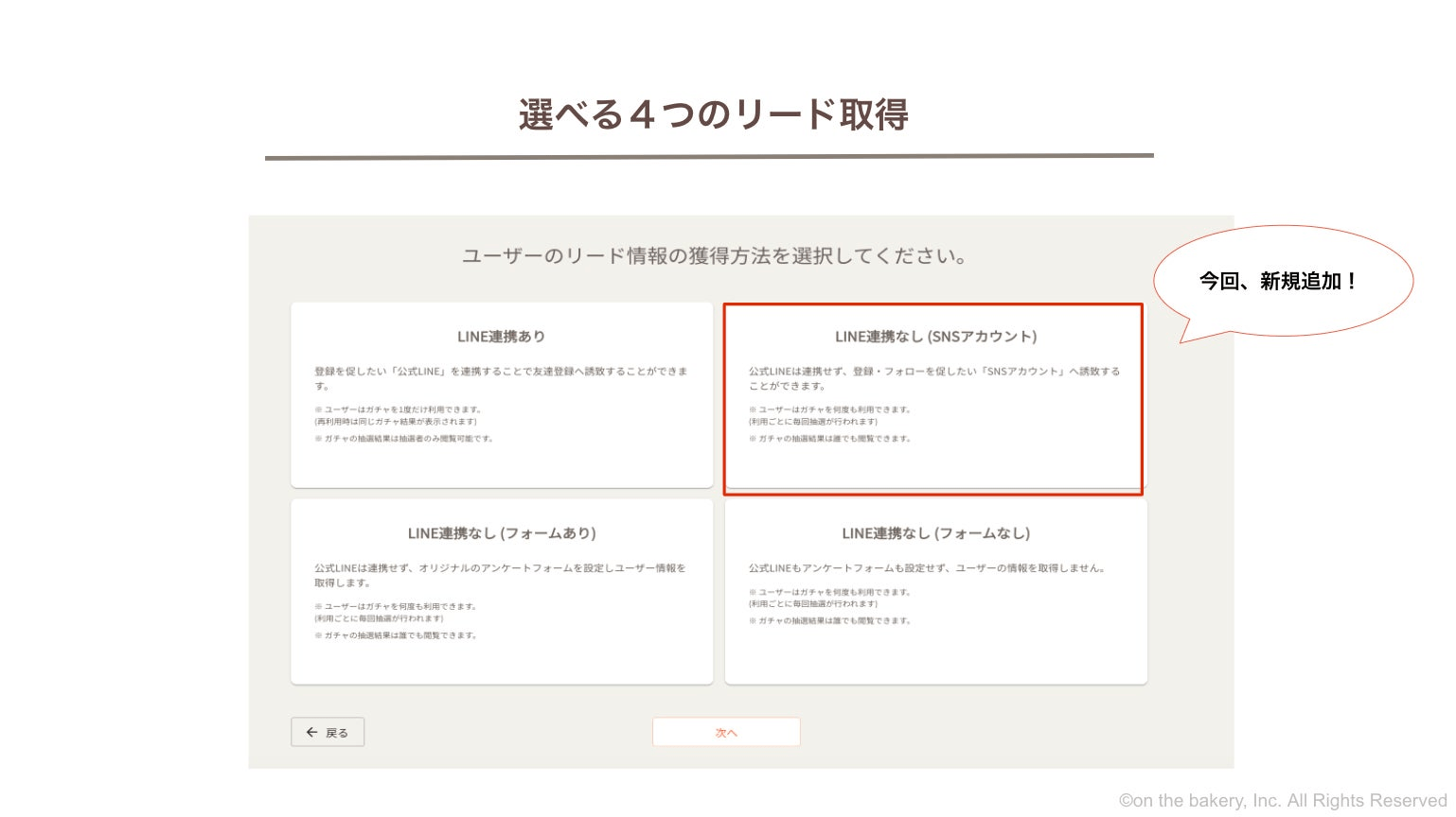 それに加えてリード情報の獲得方法に「SNSアカウント」が追加されたことで、運用中のSNSのフォロワー獲得率UPにも貢献できるようになりました。