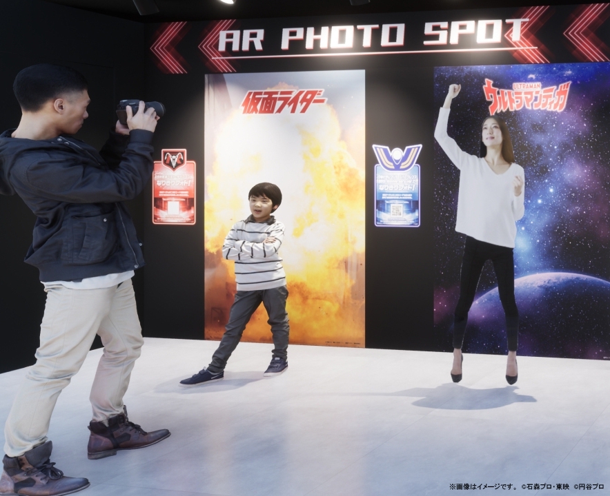 その他、ARなりきり体験コーナーなど、店舗限定のコンテンツをご用意しています。店頭の二次元コードをスマートフォンなどのデバイスで読み込むことで、変身アイテムを身に着けたかのような写真を撮影することが可能です。