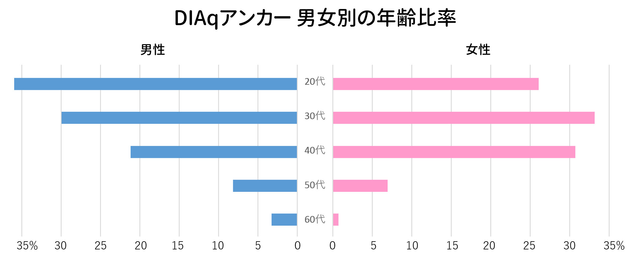 また、一般的な自動車運送事業者と比べて、DIAqアンカーは女性の割合が高いことも特徴です。(自動車運送事業者:2.4% DIAq:20%)