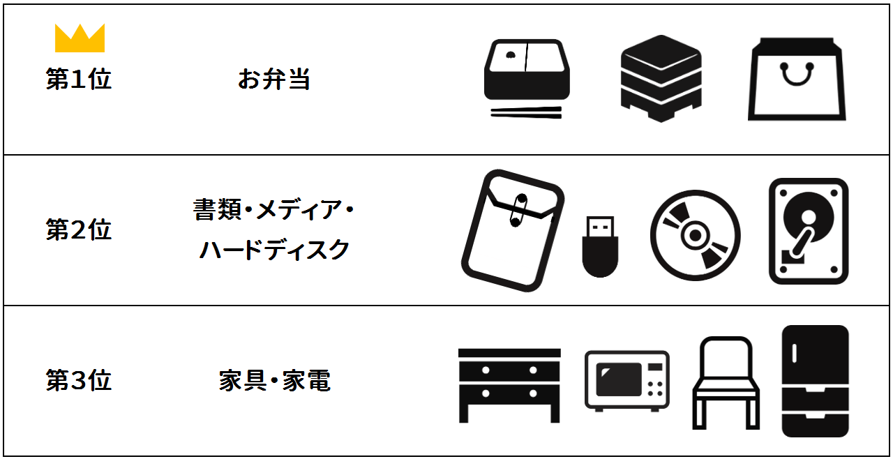 この1年間を通して、とくに取扱い件数が多かった荷物を、ランキング形式でご紹介いたします。
