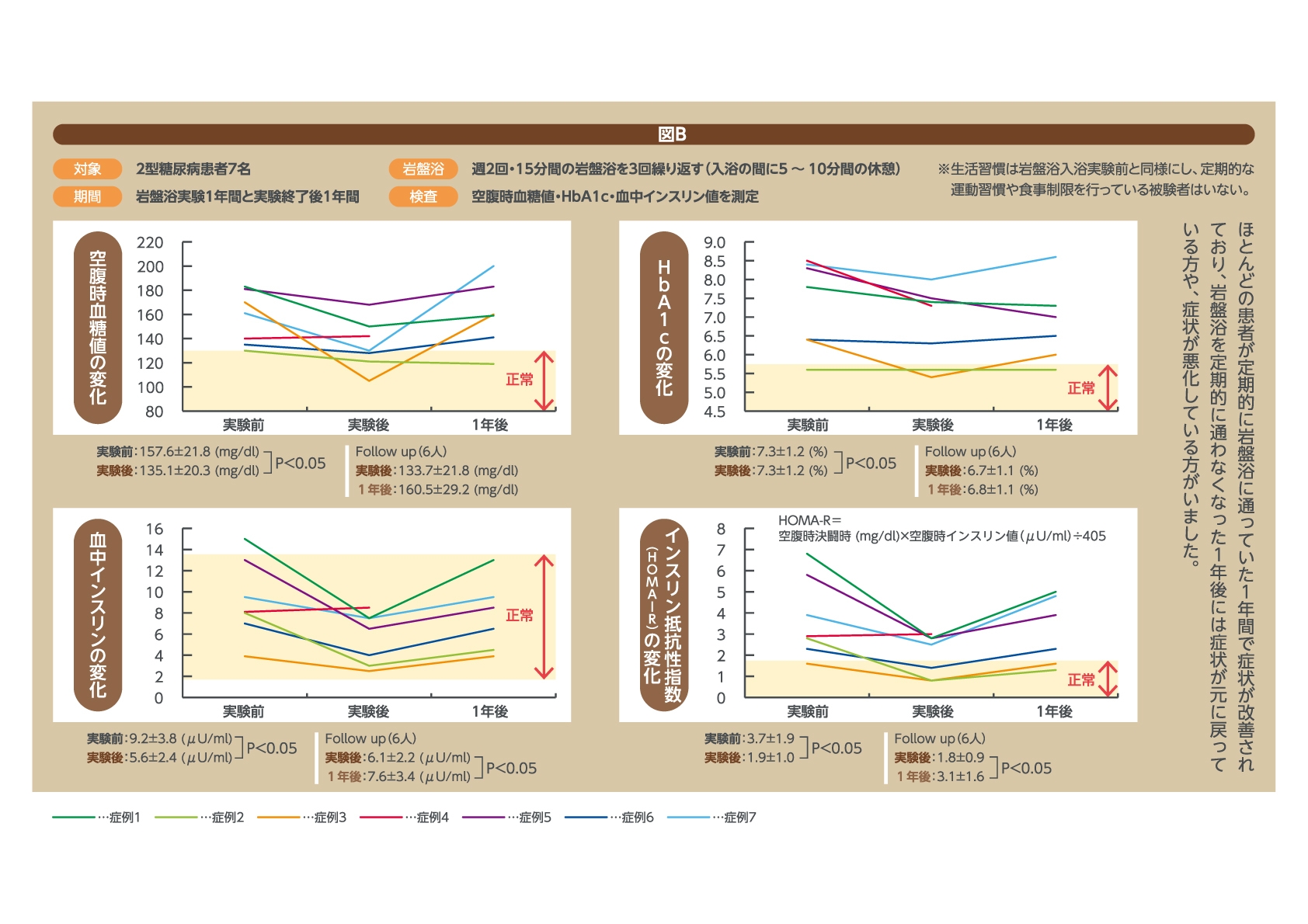 岩盤浴を継続的に行うと、インスリンの分泌量が減少してくるにも関わらず血糖値が改善されます。免疫機能を原因とする種々の疾患に対する効果も期待できると考えられ、今後、遠赤外線マイルド加温療法が糖尿病に限らず種々の生活習慣病や慢性疾患に対する代替医療として応用されることが期待されています。