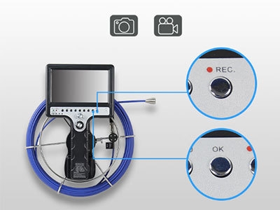 この度販売を開始した、管内検査カメラは、高性能ながら驚きの価格を実現しました。小径配管(10mm~)や、大口径配管(~500mm)など各種配管に合わせてお選びいただけるよう様々なサイズのカメラヘッドやケーブルを取り扱いしています。カメラヘッドは、最高水準のIP68の防水構造により、どんな環境下でも使用可能です。配管検査で必要不可欠な、静止画・動画の撮影機能も搭載しています。さらに、エルボ箇所の通過もでき、105°の広角レンズを採用している機種もあり、配管の隅々まで検査することができます。