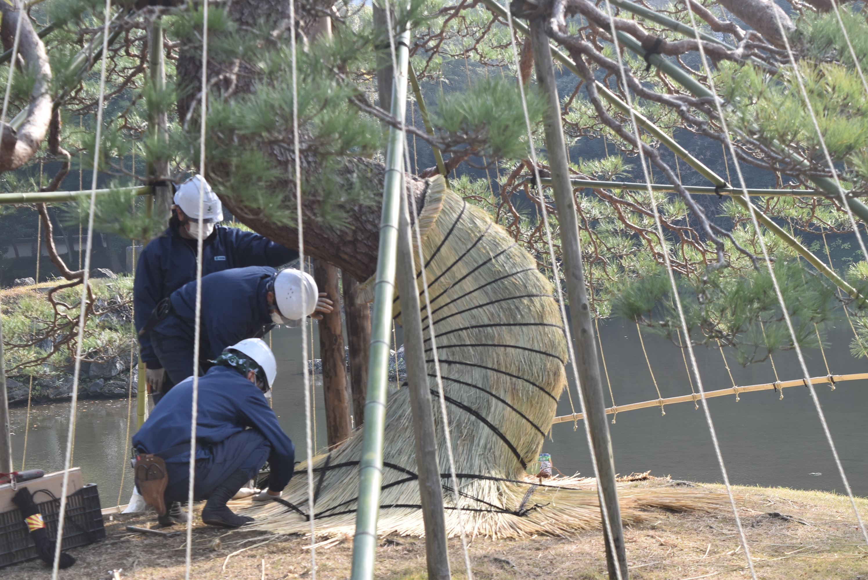 小石川後楽園では、庭園維持を現場で取り仕切る親方ともに陽春の庭園を散策する「庭さんぽ」を3月13日(水)に開催します。松の手入れや冬支度・菰巻きについてなど、景観を維持する立場から解説いたします。日本庭園の「松」に興味がある人にぴったりの「庭さんぽ」です。
