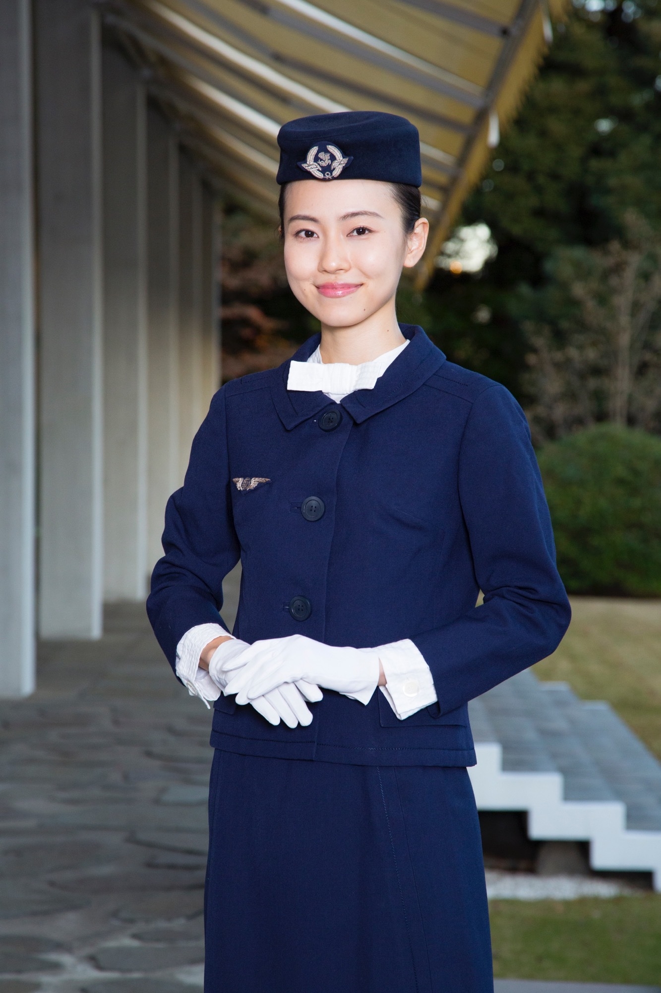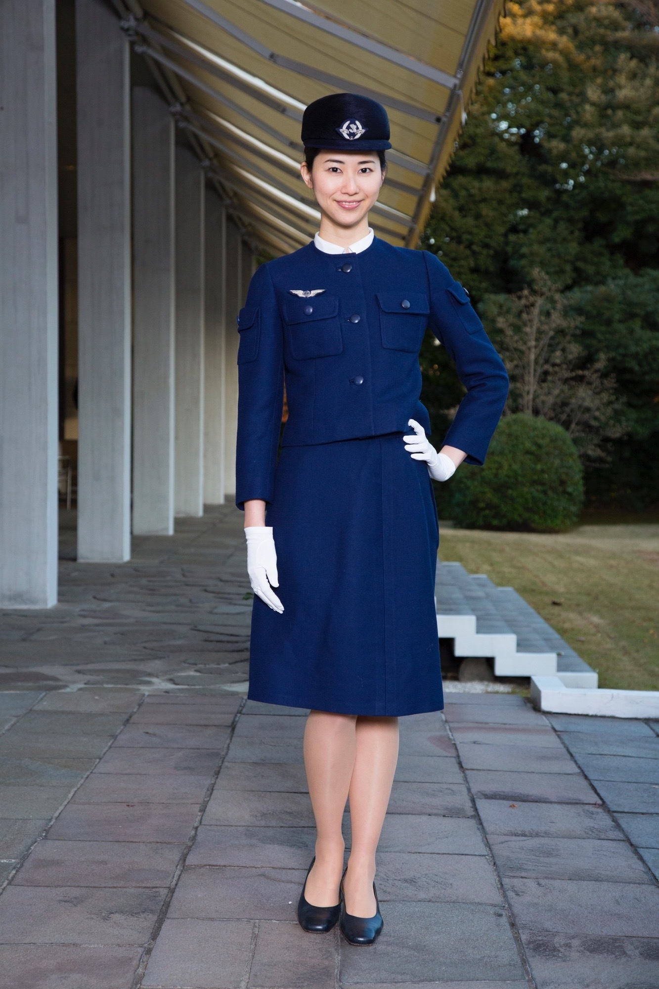 世界的なオートクチュールメゾンに依頼した最初の制服。夏の水色のワンピース、紺色の冬のスーツ、共にステッチ使い、ベルトやブラウスの胸元のリボン飾りに日本の帯をイメージした当時のモチーフが使われている。複雑な型紙で、外から見えない隠しポケット、一見ツーピースに見えるウエストラインの切り替えやほっそりしたラインを作る微妙なダーツなどにクチュールメゾンのテクニックが駆使されている。