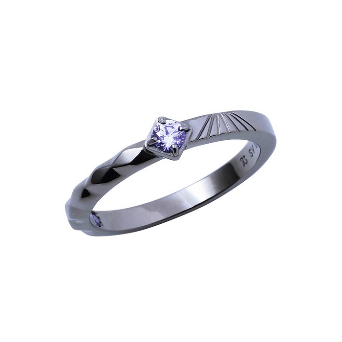 ストレートフォルムのリングにキラキラと輝くカット風の加工を施し、