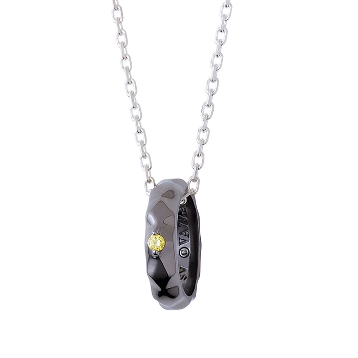 カット風の加工を施したトップのベビーリングに、イメージカラーストーンを1石セットした、VAZZYを連想させるブラックカラーのデザイン。